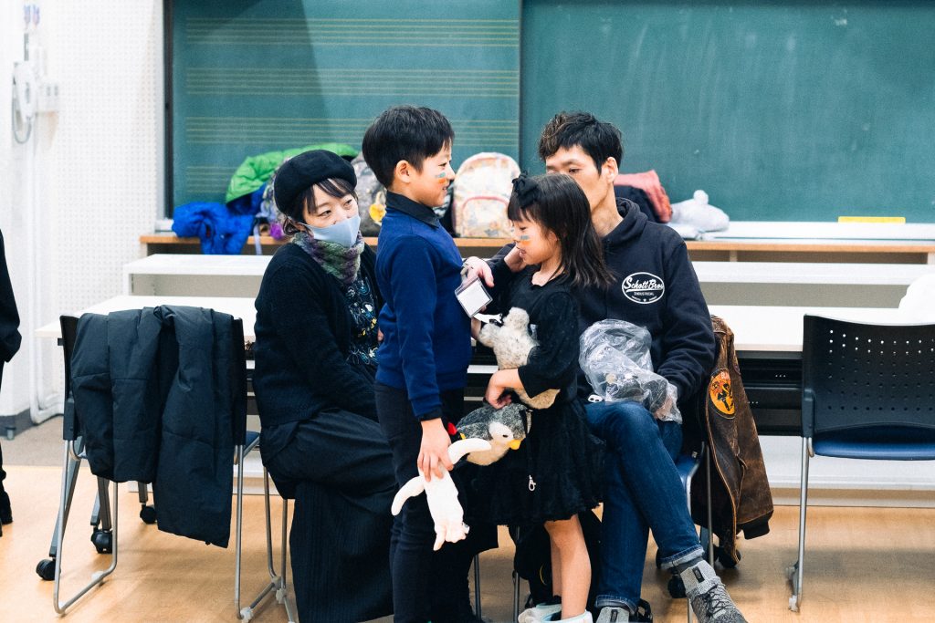 保護者のみなさんには、お客さん役ということで、ステージ前に移動していただき、